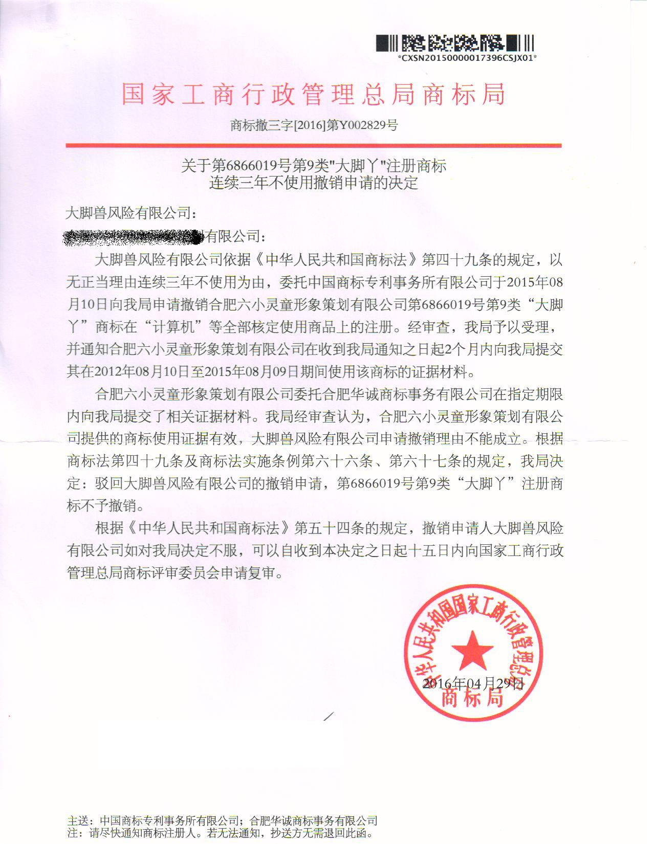 上一篇:“桶里香”商标准予注册的决定