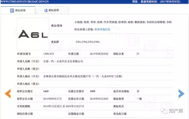 奥迪“A6L”是申请人在德国新A6的基础上开发出的车系,是奥迪A6的换代产品,该车系于2005年6月16日上市。