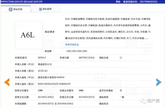 2、引证商标由申请人于2007年1月26日向商标局提出注册申请,2014年1月6日初步审定并公告,2014年4月7日获准注册,核定使用在第12类汽车;小汽车等商品上,商标专用权期限至2024年4月6日。