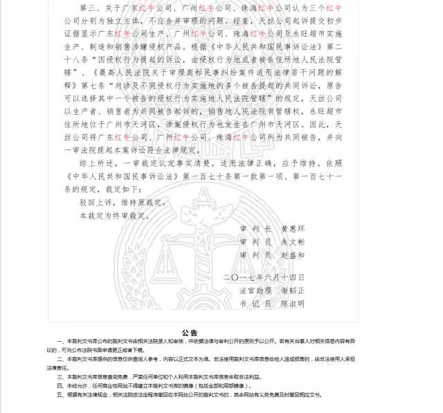 泰国红牛将其供应商奥瑞金诉上法院。